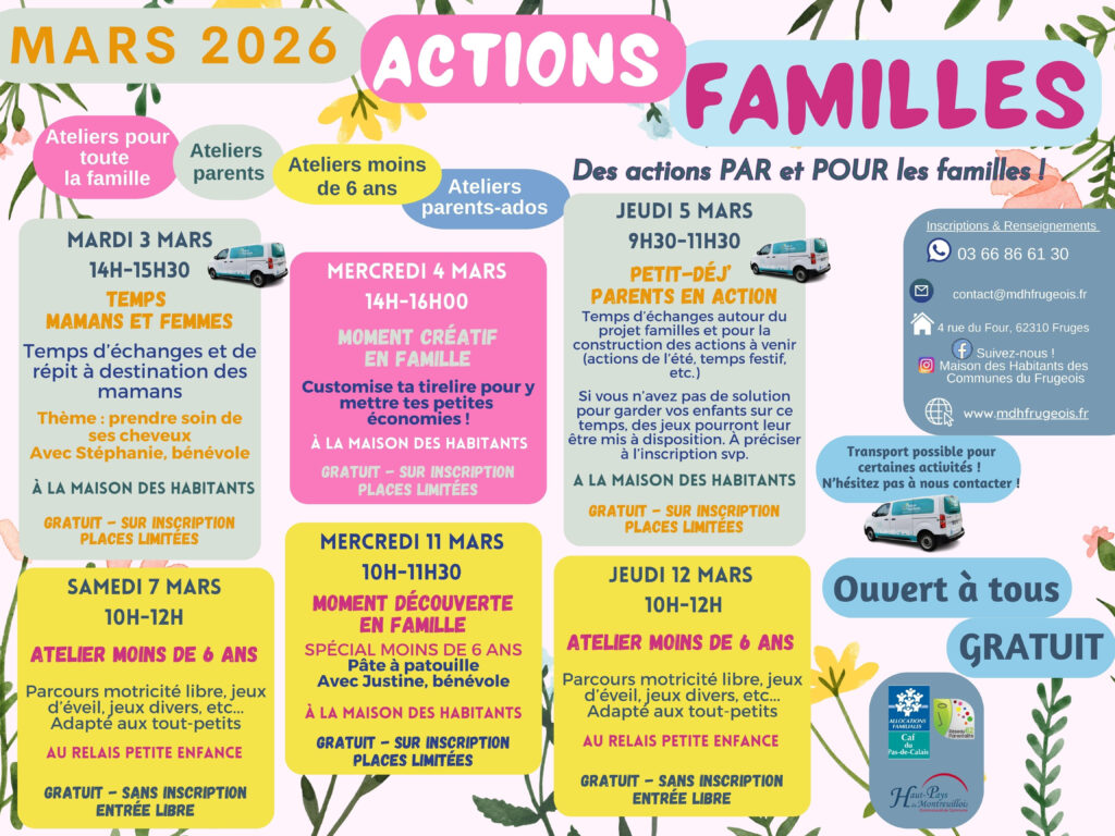 Découvrez les actions familles de la Maison des Habitants des Communes du Frugeois pour le mois de mars 2026