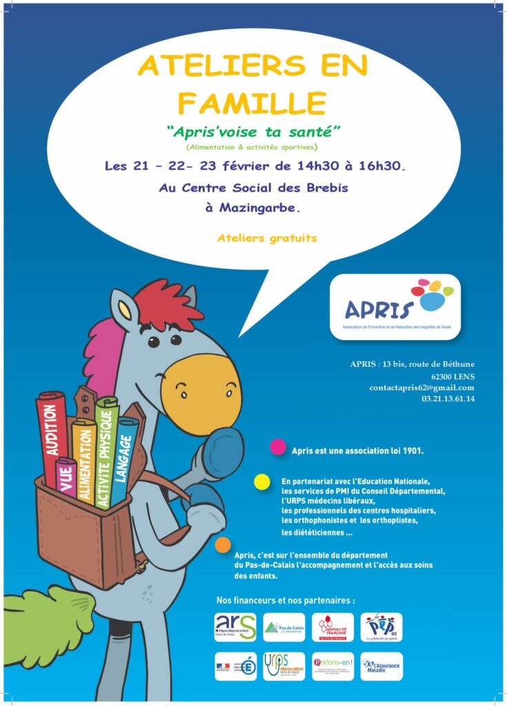 Le centre social des Brebis, à Mazingarbe et l’association APRIS, vous invite à participer à un spectacle autour de la thématique de l’alimentation et de l’activité physique le lundi 20 février à 10h. Différents ateliers en famille vous seront ensuite proposer les 21, 22 et 23 février après-midi.