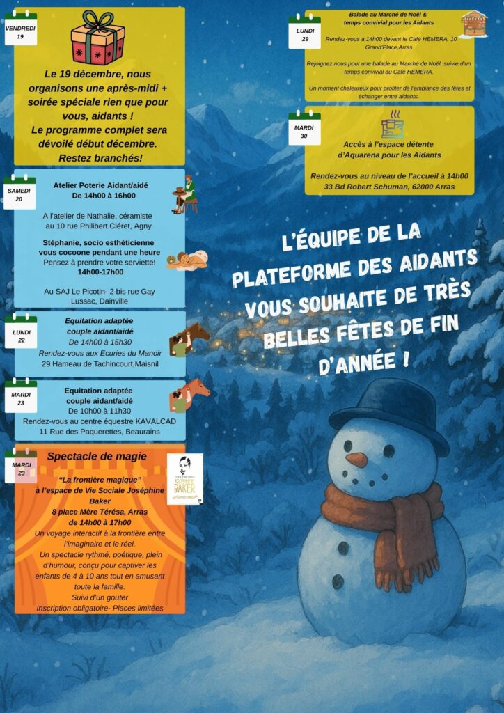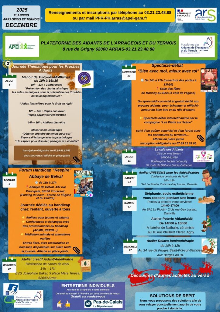 Calendrier d’activités de la Plateforme des Aidants de l’Arrageois et du Ternois Décembre 2025
