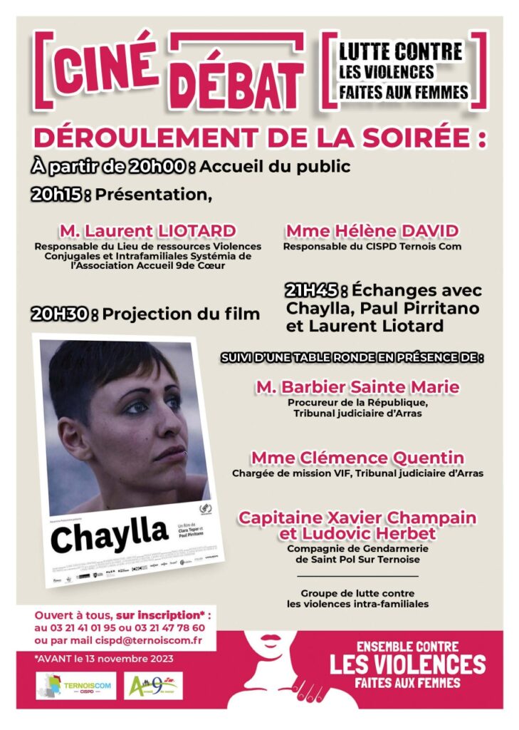 Cette soirée sera animée par Monsieur Laurent Liotard (responsable du lieu de ressources Violences Conjugales et Intrafamiliales ‘Systémia’) autour de la projection du film « CHALLYA » (Synopsis sur Flyer en pièce jointe) et en présence de :