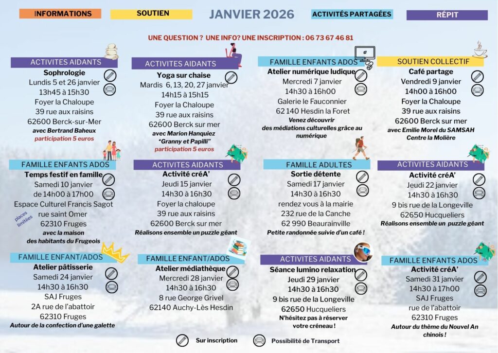 Découvrez le planning de la plateforme de répit “Un temps pour soi” pour le mois janvier 2025
