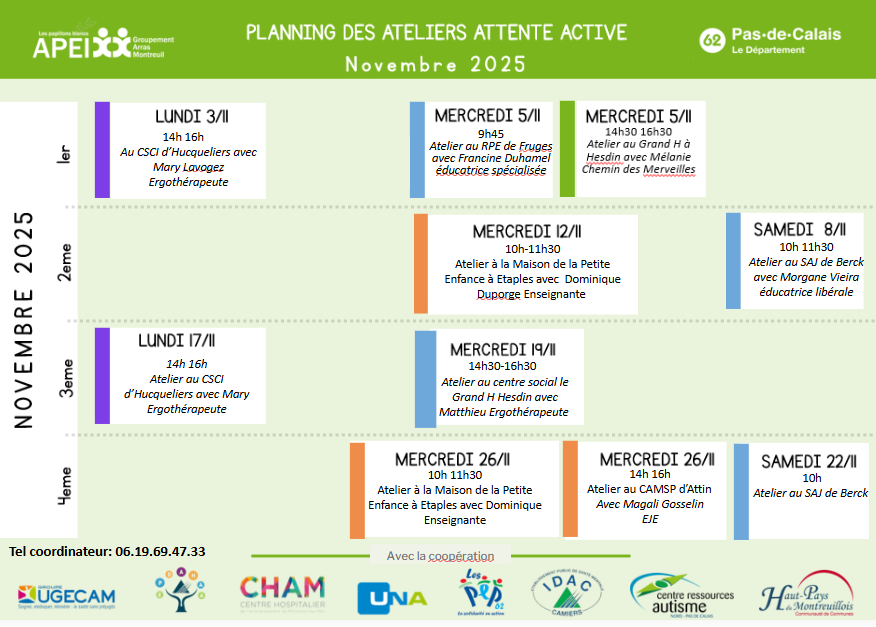 Découvrez le planning des ateliers Attente Active du Montreuillois pour le mois de novembre 2025