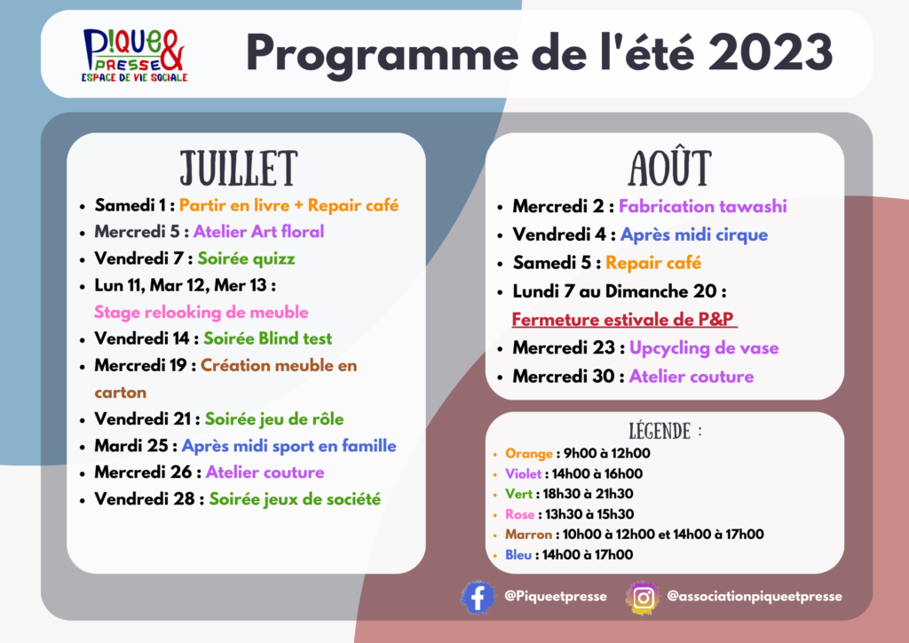 Découvrez le planning d’été de l’Espace de Vie Sociale « Pique & Presse »
