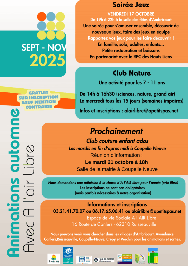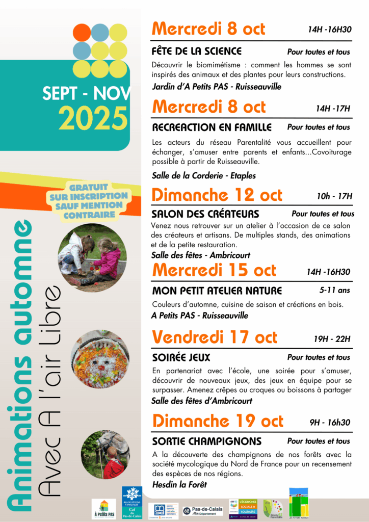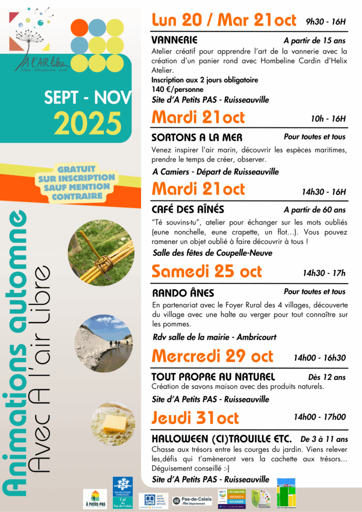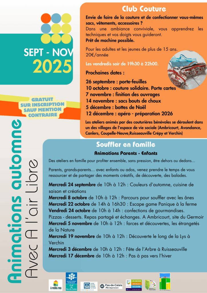 Découvrez le programme de l’Espace de Vie Sociale A l’AIR Libre à Ruisseauville de septembre à novembre 2025