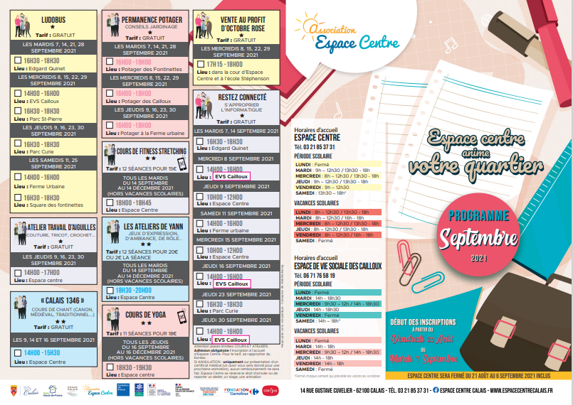 Espace Centre Calais : découvrez le programme du mois de septembre