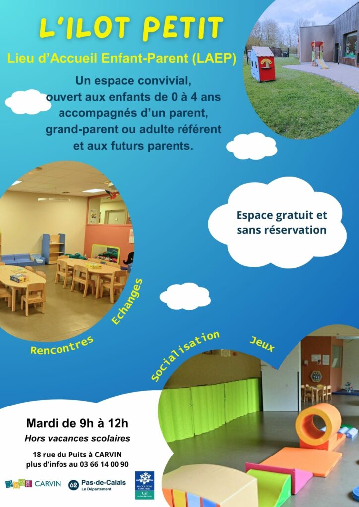 > Le Lieu d’Accueil Enfants Parents (LAEP) l’Ilôt Petit est ouvert 9h00 à 12h00. C’est un espace convivial ouvert aux enfants de 0 à 4 ans accompagnés d’un parent et aux futurs parents.