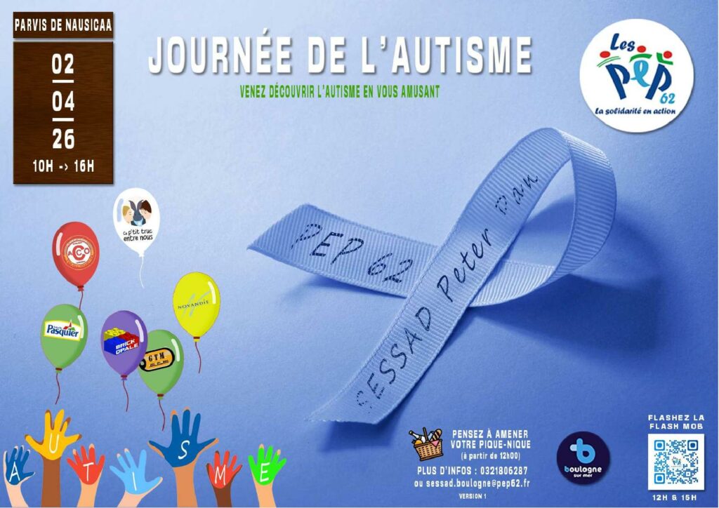Journée de sensibilisation à l’autisme 2026 le 2 avril 2026 de 10h00 à 16h00 sur le parvis de Nausicaa avec le SESSAD PETER PAN !
