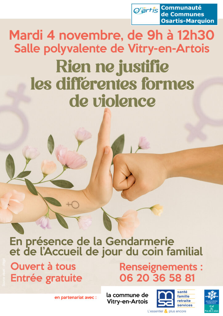 La communauté de communes Osartis Marquion vous propose un temps d’échange sur les différentes formes de violence