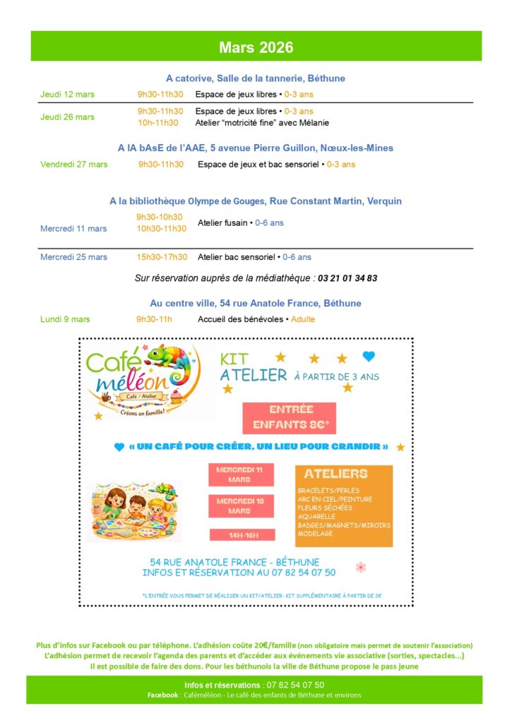 Page Facebook du Caféméléon, le café des enfants de Béthune et environs