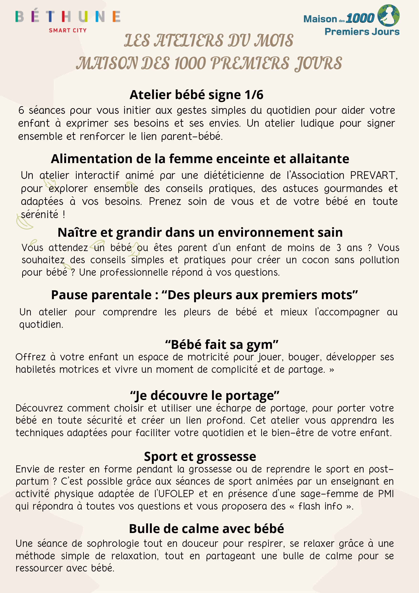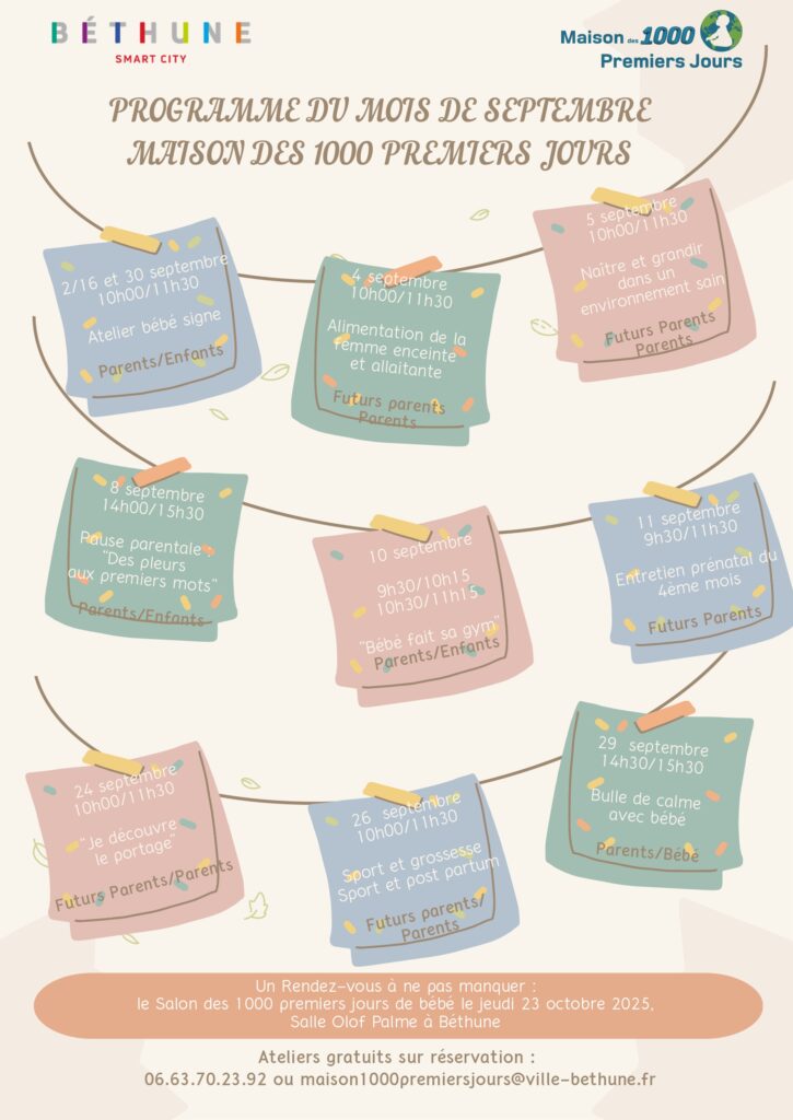 Le programme du mois de septembre – Maison des 1000ers jours de Béthune