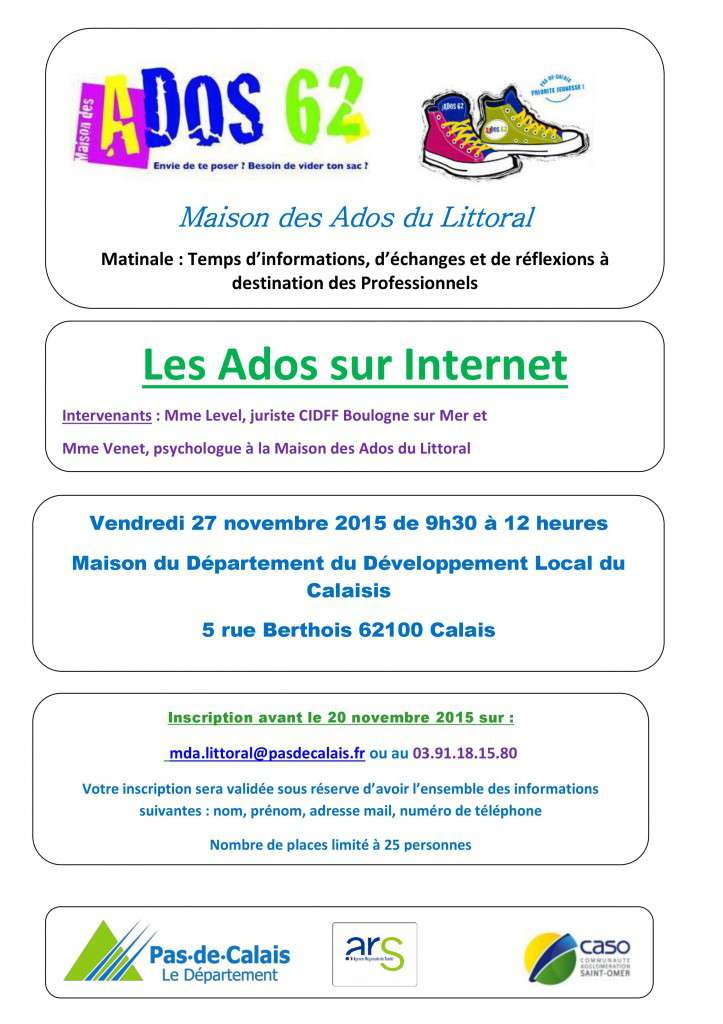 "Les ados sur internet", matinale de la Maison des Ados du Littoral, vendredi 27 novembre de 9 h30 à 12 h à Calais