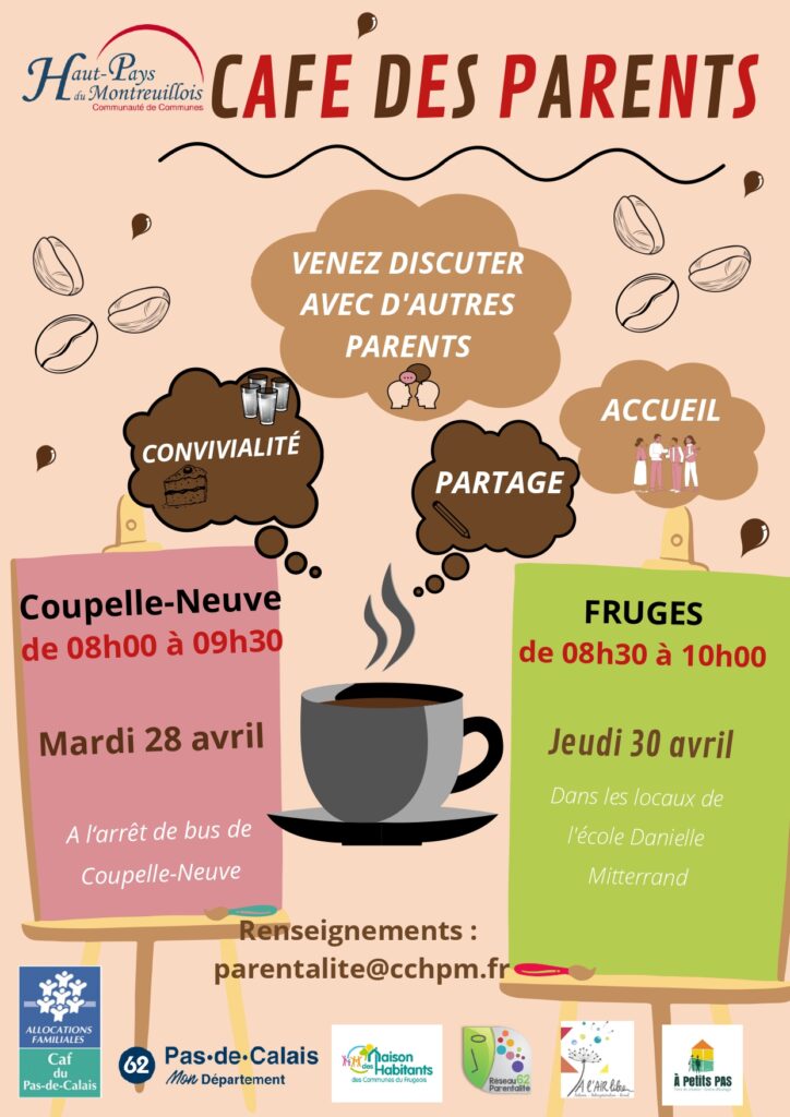 Les prochaines rencontres du café des parents sur Fruges et Coupelle-Neuve en avril 2026