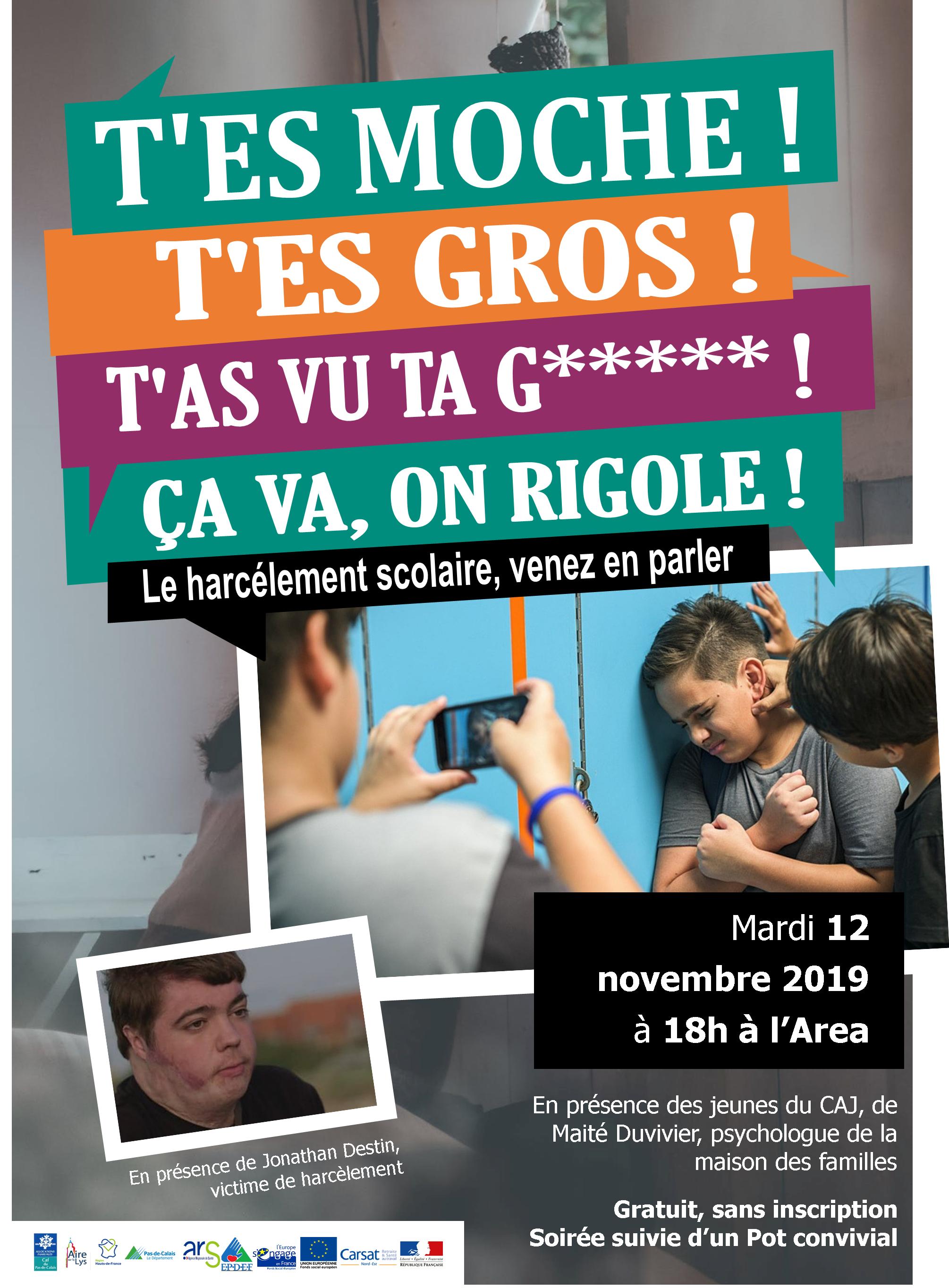 Mardi 12 Novembre 2019 – Venez échanger autour du harcèlement scolaire à l’AREA d’Aire sur La Lys