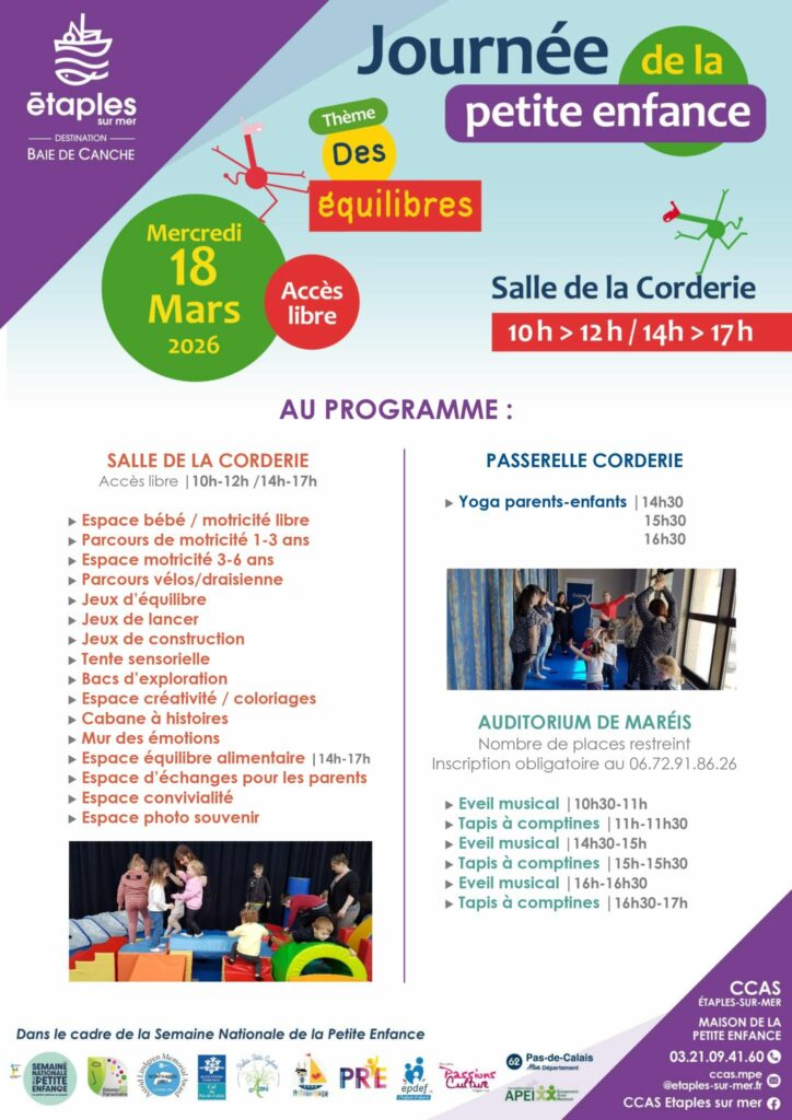 Dans le cadre de la Semaine Nationale de la Petite Enfance, l’équipe de la Maison de la Petite Enfance et ses partenaires organisent une journée sur le thème « Des équilibres » le mercredi 18 mars à la salle de la Corderie.