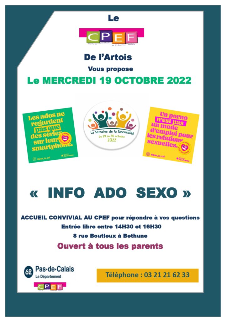 Mercredi 19 octobre 2022 : « Info Ado Sexo » par le CPEF de l’Artois