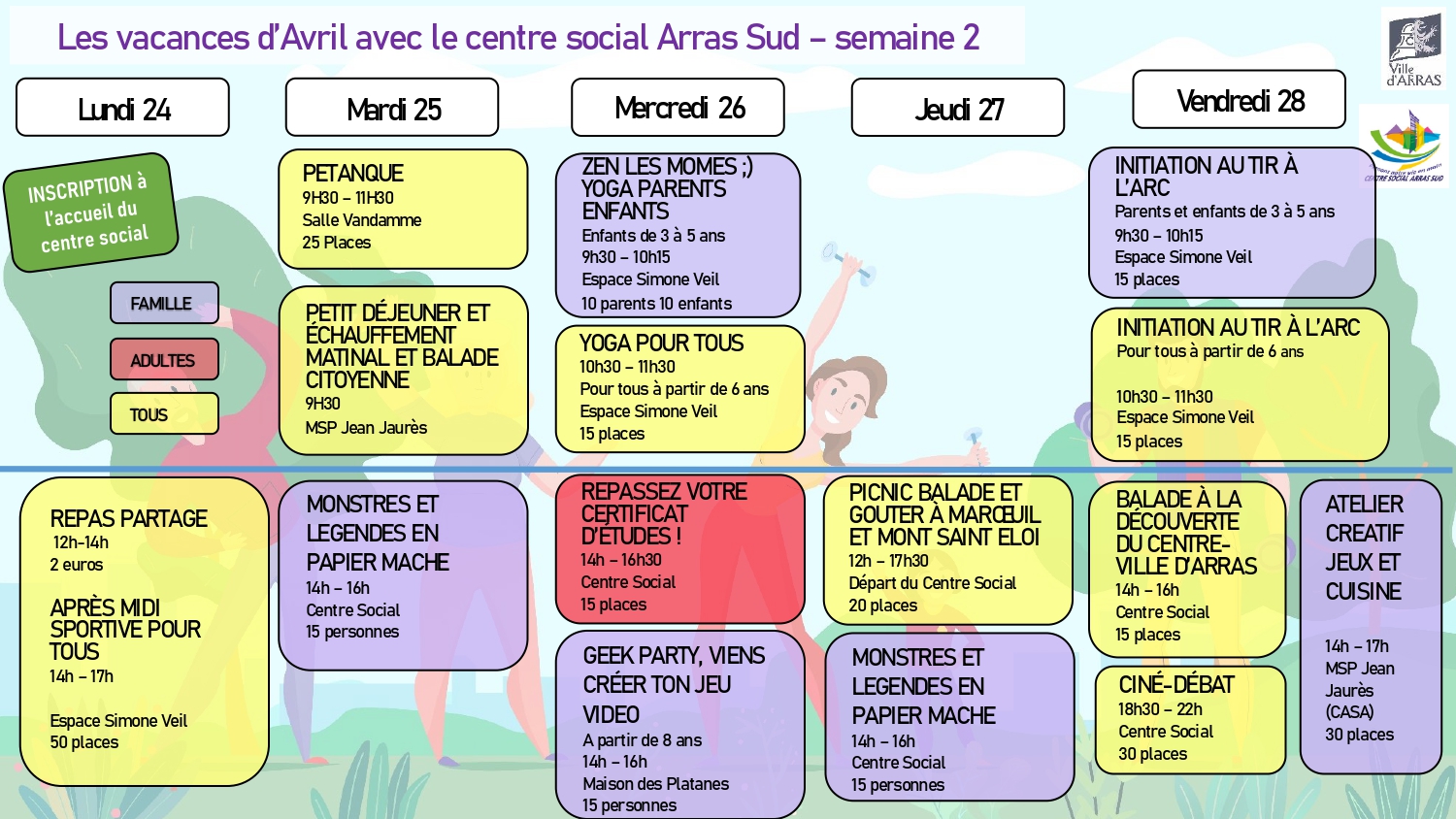 Planning d’activités – vacances d’avril – Centre Social Arras Sud