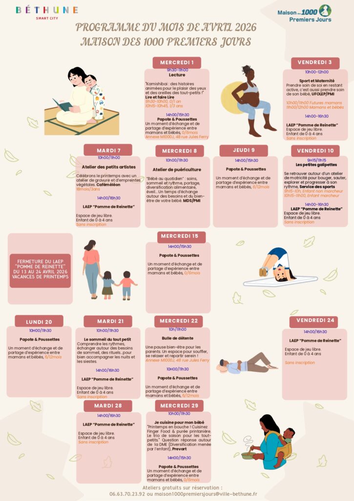 Programmation des ateliers d’avril 2026 – Maison des 1000ers jours Béthune