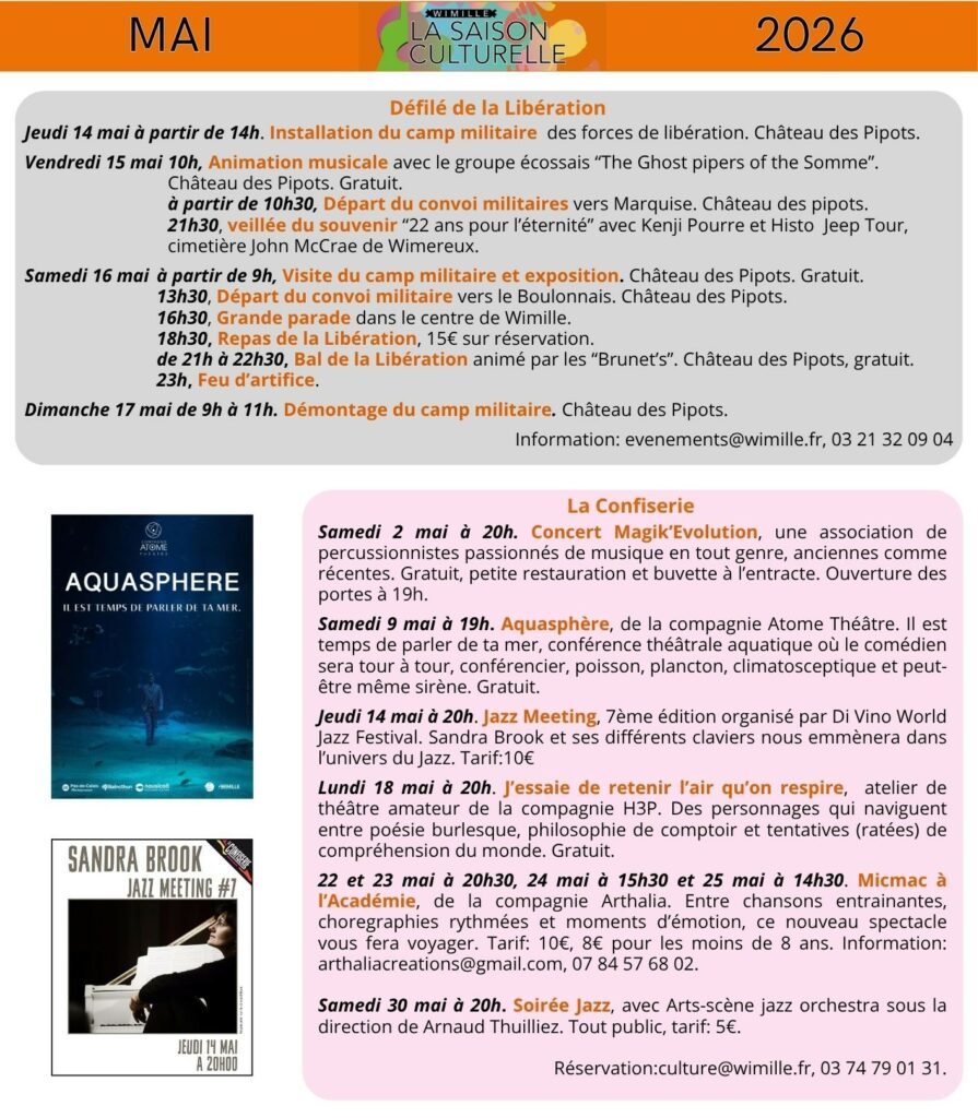 Programmation des rencontres pour toute la famille pour le mois de mai au sein du pôle culture de Wimille !
