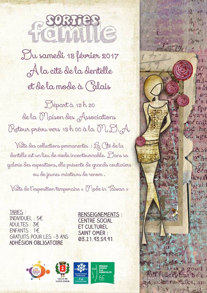 Le Centre Social et Culturel de St-Omer vous propose une sortie en famille à la cité de la dentelle et de la mode de Calais le Samedi 18 février 2017.