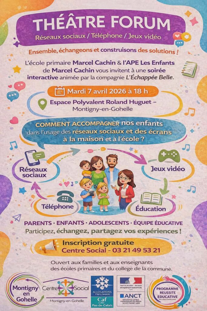 Théâtre forum sur l’usage du numérique à la maison et à l’école à l’Espace Polyvalent Roland Huguet (Montigny-en-Gohelle)