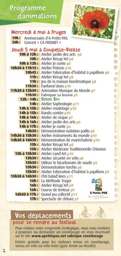 Venez en famille au Festival Coquelicot organisé par A Petits Pas le jeudi 5 mai 2016 à Coupelle-Vieille à partir de 10h